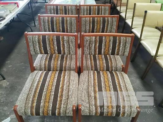 6 x RETRO TIMBER FRAME FABRIC DINING CHAIRS