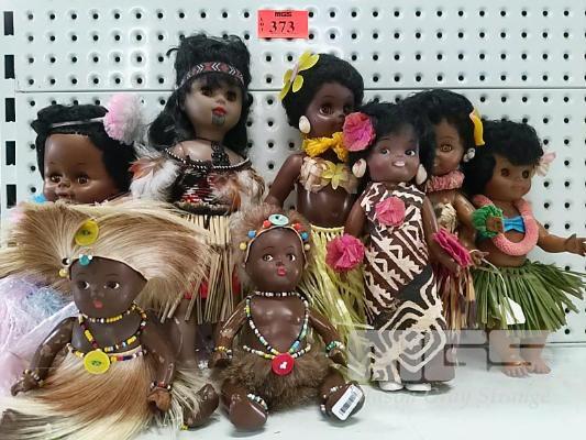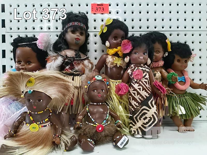 8 x ASSORTED CELLULOID DOLLS IN TRADITIONAL DRESS, 18-35cm