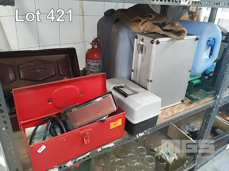 SKIL BELT SANDER, HAND TOOLS, WATER CONTAINERS, GARDENER KNEEL PAD, ETC