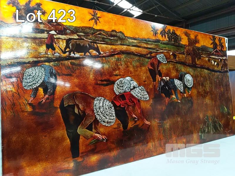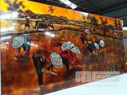 RICE HARVEST LACQUER PAINTING