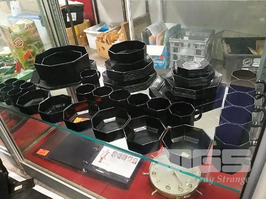 COMPLETE 6-SITTING MID CENTURY ARCOROC BLACK GLASS OCTAGONAL DINNERWARE SET
