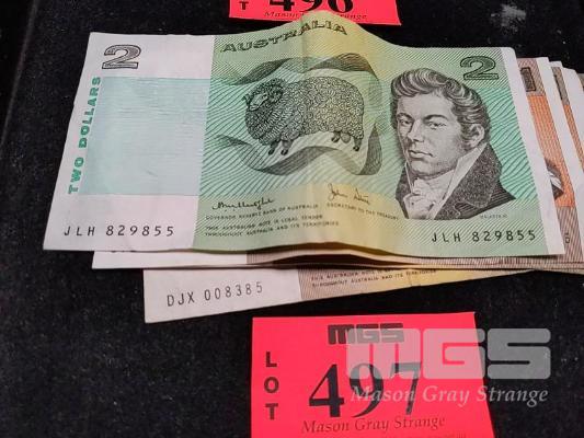 5 X AUSTRALIA PAPER BANKNOTES, INC; 3 X $1 JOHNSTON/STONE, 1 X $1 KNIGHT/STONE, 1 X $2 KNIGHT/STONE