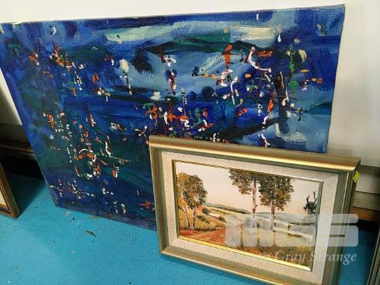 2 x ORIGINAL ARTWORKS: ABSTRACT PAINTING AND AUSTRALIAN OUTBACK SCENE SIGNED "WF"