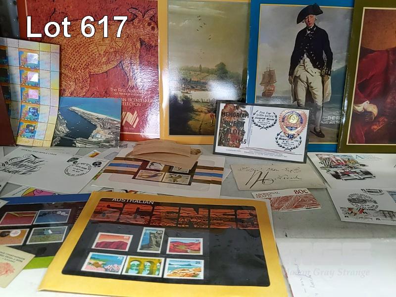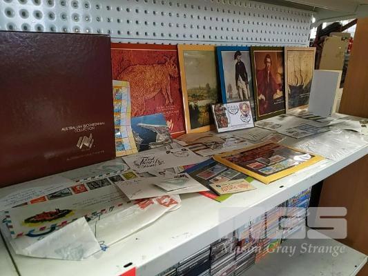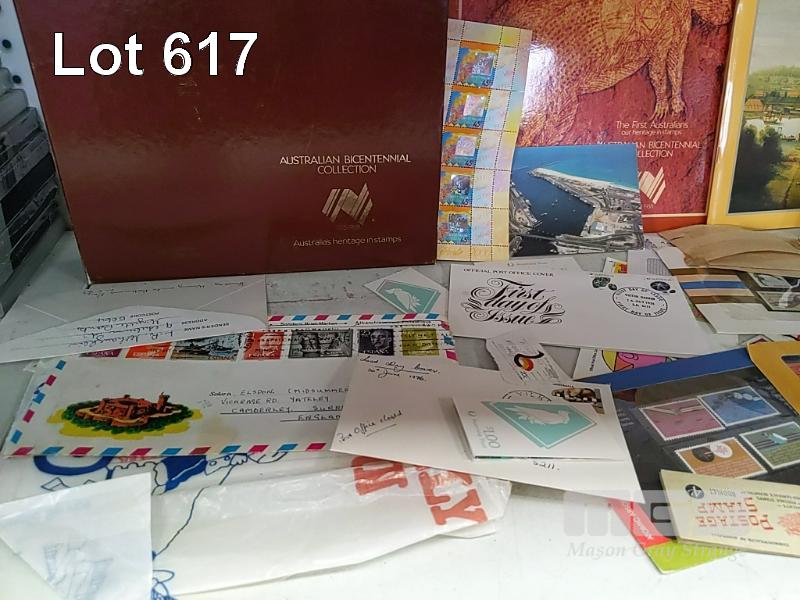 COLLECTION OF STAMPS, POSTCARDS, THE BICENTENNIAL COLLECTION, BOOKS, ETC