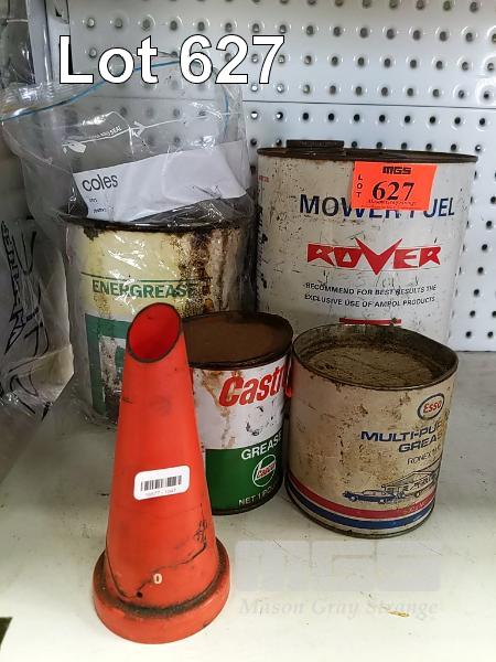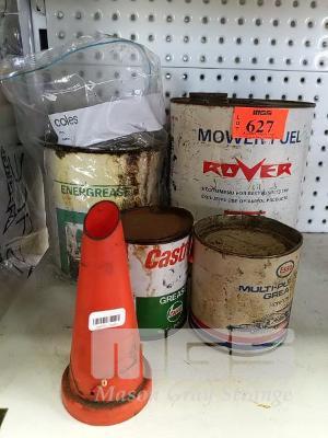 COLLECTION OF OIL/PERTOL RELATED GREASE TINS & OIL BOTTLE POURER, INC; AMPOL, ESSO & CASTROL
