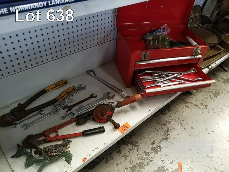 TOOLBOX WITH SPANNERS, BOLT CUTTERS, ETC
