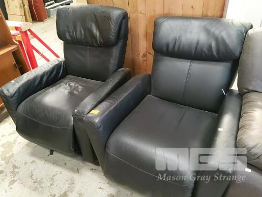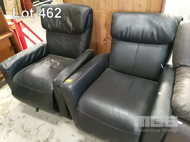 PAIR OF BLACK LEATHER SWIVEL RECLINERS (ALL FAULTS)