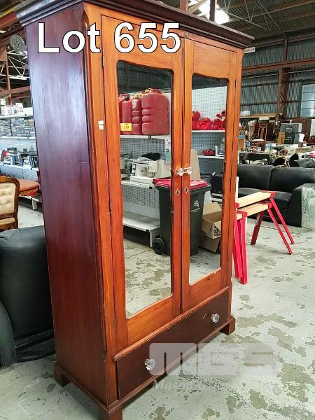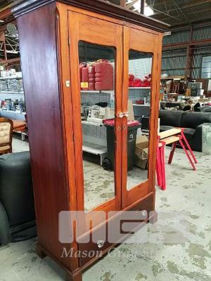 PINE WARDROBE, 2 X MIRRORED DOORS, SINGLE DRAWER UNDER STORAGE