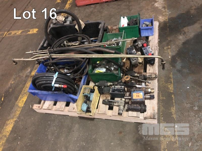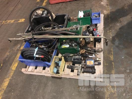 ASSORTED HYDRAULIC CONTROL VALVES, SOLENOIDS, HOSE COUPLERS, CLEVIS ENDS, HYDRAULIC BLOCKS, BOSCH, VICKERS, NB & MORE