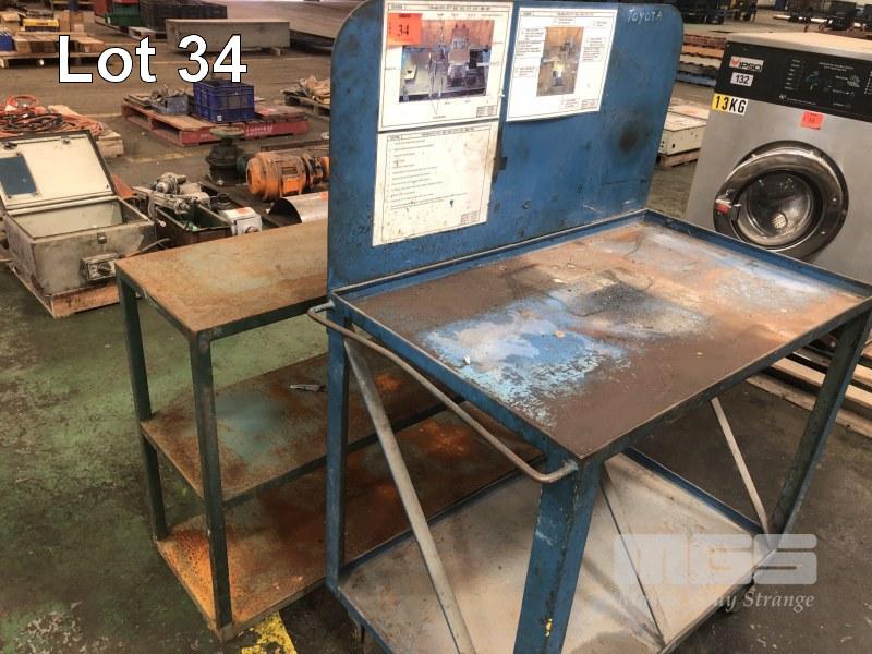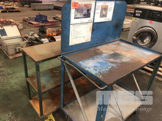 STEEL 2 TIER WORK TROLLEY, 1000 x 600mm WITH STEEL 3 TIER STORAGE RACK, 1200 x 400 x 850mm (H)