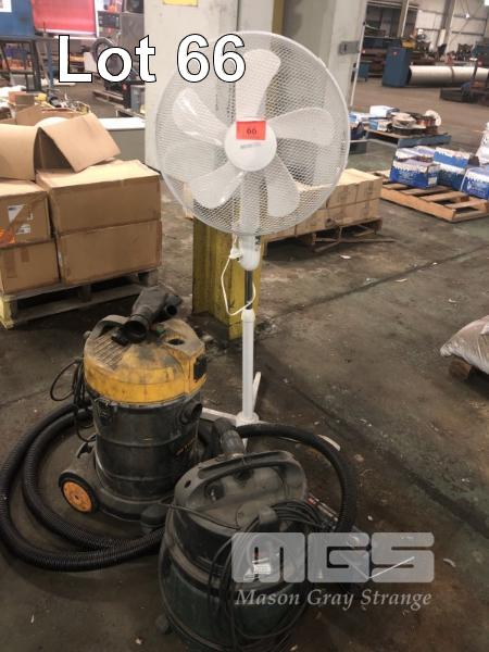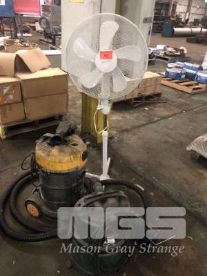 MORTELL PEDESTAL FAN & 2 x VACUUM CLEANERS, DETROIT & RYOBI WITH HOSES