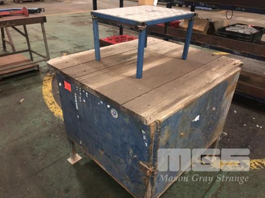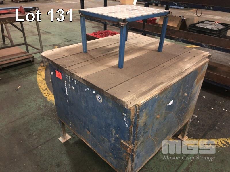 STEEL WORKSHOP CUPBOARD, SOLID TIMBER TOP, 1000 x 900 x 900mm & SMALL STEEL/ALLOY STEP