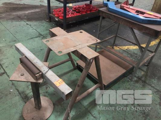 SMALL STEEL WORK BENCH, 2 x LIFTING JIGS & LOW STEP WITH 2 x STANDS, 870 x 600mm