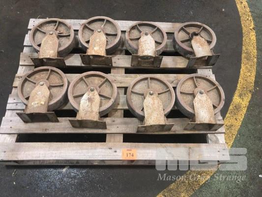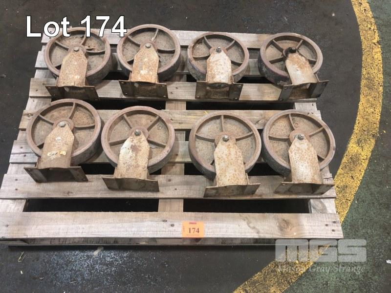 6 x H/D LEMCOL CASTOR WHEELS, NEOPREN COATED, 250 x 60mm D APPROX