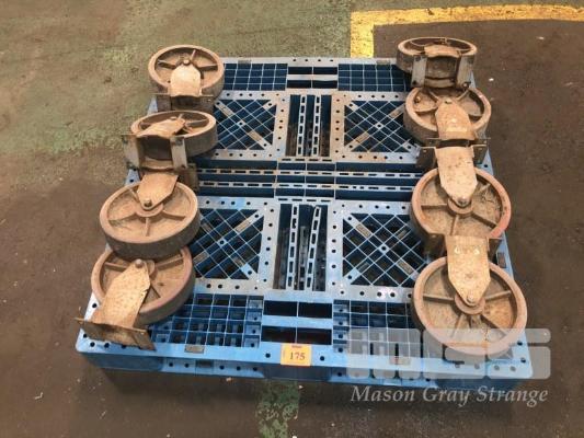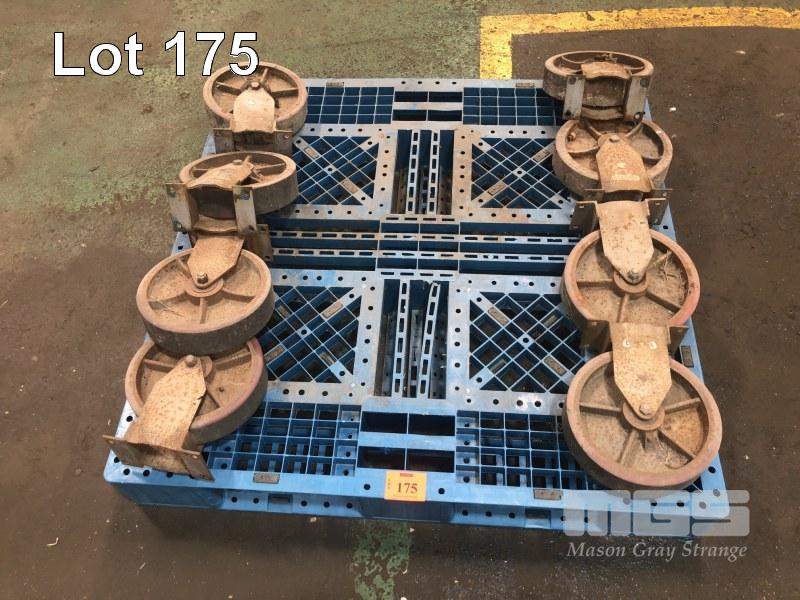 6 x H/D LEMCOL CASTOR WHEELS, NEOPREN COATED, 250 x 60mm D APPROX