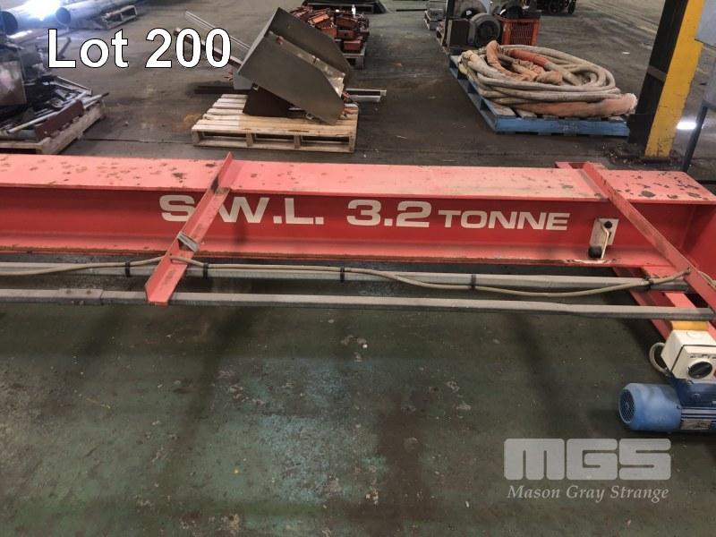 MORRIS JDN, OVERHEAD CRANE, SWL 3.2 TONE, 9.65m CENTER TO CENTER WIDTH