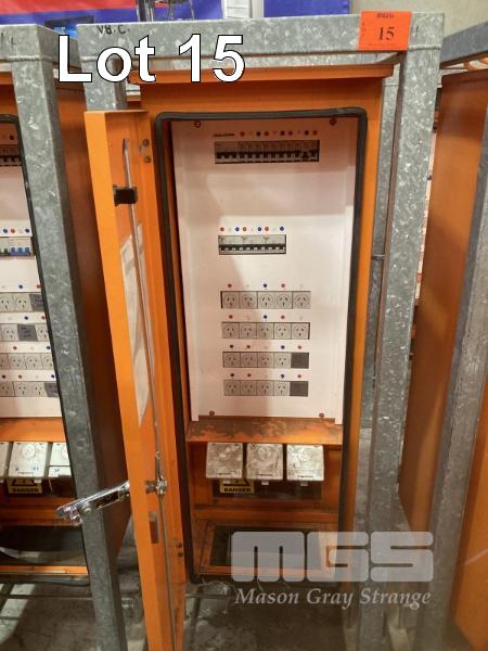 POWER DISTRIBUTION BOARD, 160 x 55cm, 18 x 240V & 3 x 415V OUTLETS, GALV FRAME