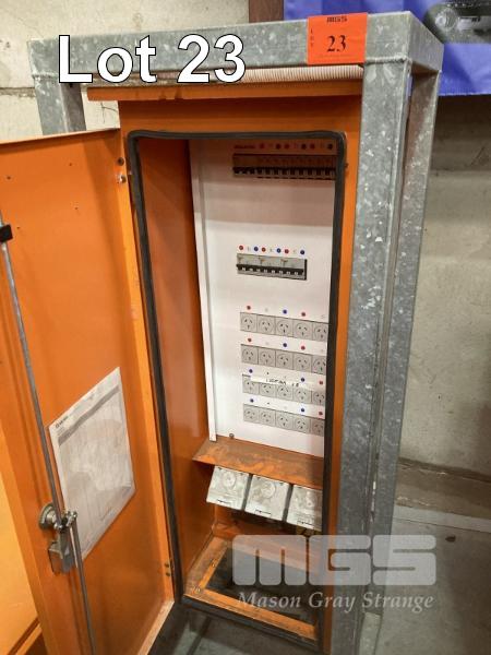POWER DISTRIBUTION BOARD, 160 x 55cm, 20 x 240V & 3 x 415V OUTLETS, GALV FRAME