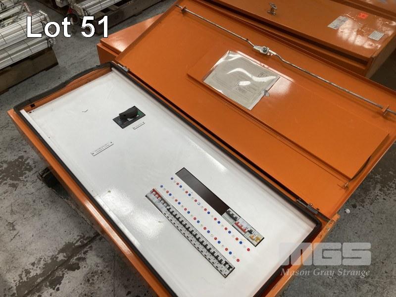 2 x DISTRIBUTION BOARDS, 140 x 60cm, WITH BREAKERS & ISOLATOR SWITCH