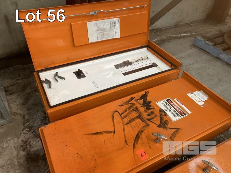 2 x DISTRIBUTION BOARDS, 140 x 60cm, WITH BREAKERS & ISOLATOR SWITCH