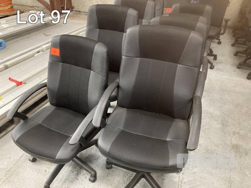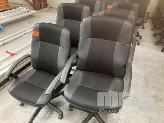 8 x MATCHING OFFICE ARM CHAIRS, BLACK VINYL, GAS LIFT