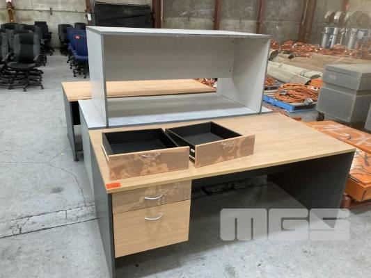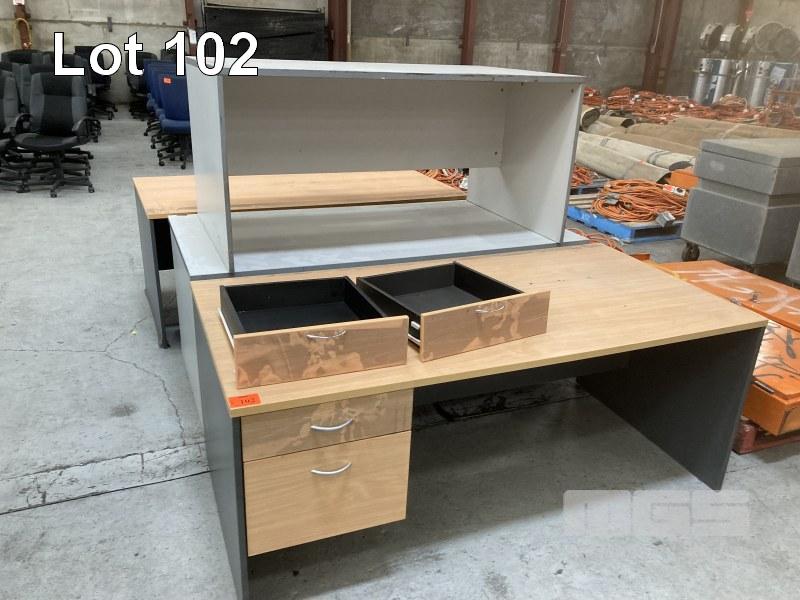 2 x DESKS, BEECH/IRONSTONE, 180 x 90cm & 2 x ASSORTED GREY LAMINATE DESKS