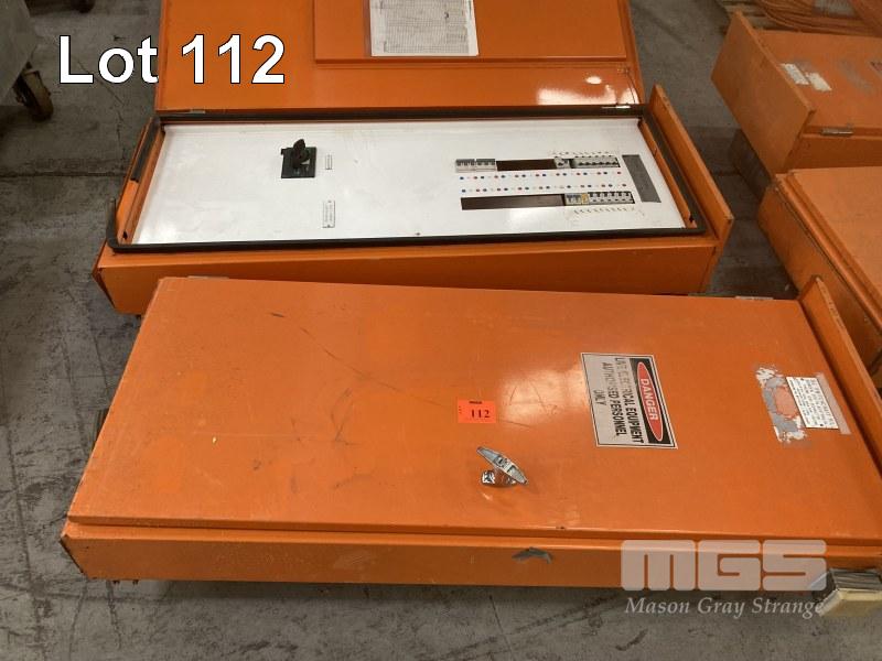 2 x DISTRIBUTION BOARDS, 140 x 60cm, WITH BREAKERS & ISOLATOR SWITCH