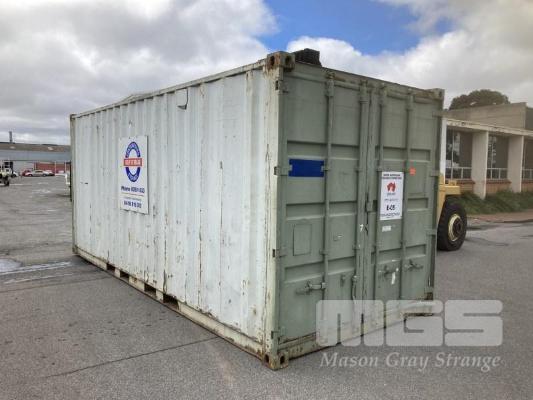 20' STEEL SHIPPING CONTAINER, SOME RUST, DAMAGED FLOOR, (E-05)