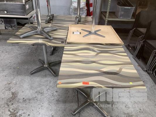 7 x CAFE TABLES, 5 @ 80 x 80cm & 2 @ 120 x 80cm, MOULDED TOP