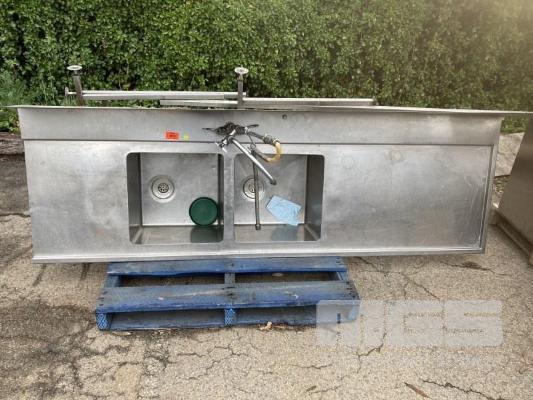 STAINLESS STEEL TWIN BOWL RHS DISHWASHING BENCH, 232 x 75cm WITH RINSE TAP & SPLASHBACK