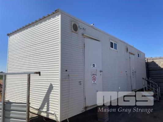 EMAC MALE/FEMALE ABLUTION BLOCK RELOCATABLE 9 x 3m FEMALE: 3 PAN MALE: 2 PAN & URINAL HAND BASINS, HOT WATER SERVICE, DRYER & LIGHTING
