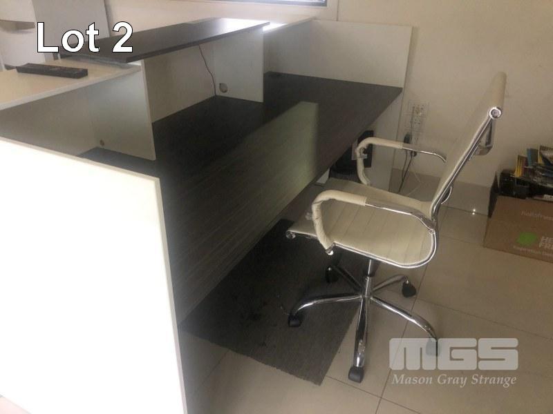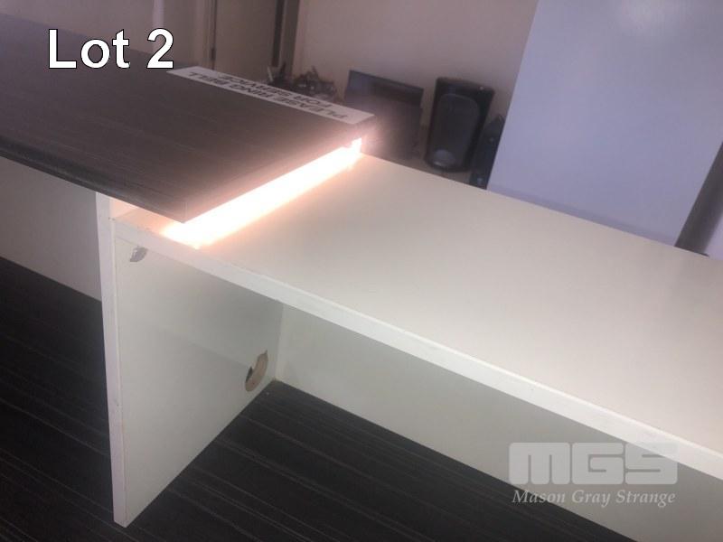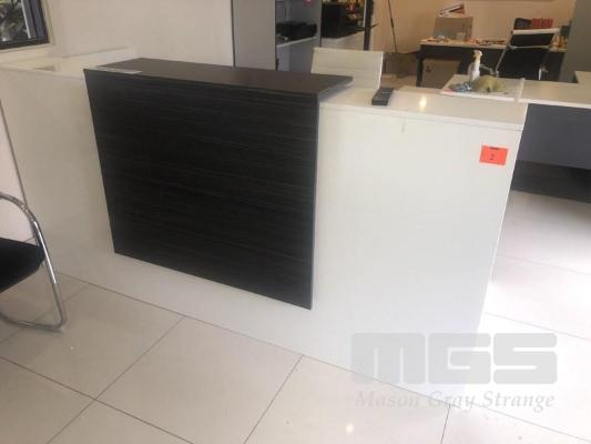 RECEPTION COUNTER, WHITE LAMINEX & DARK TIMBER FINISH, WITH LED LIGHTING, 2200 x 900mm