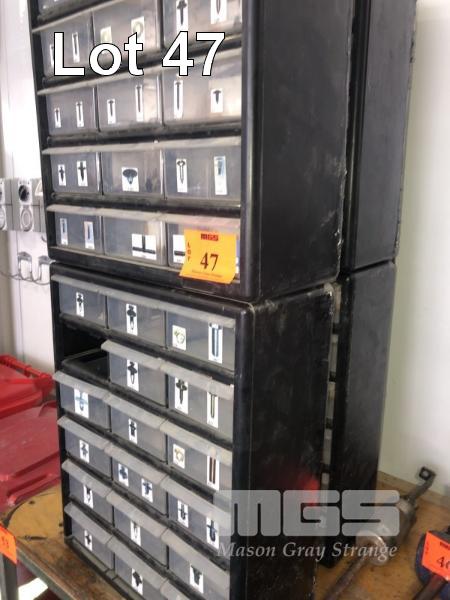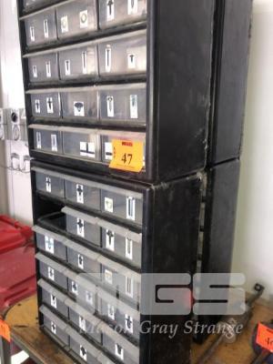6 x 18 DRAWER PARTS UNITS & CONTENTS, INCLUDING, POP RIVETS, TRIM CLIPS, etc.
