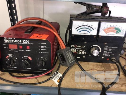 PROJECTA WORKSHOP 1200, 6/12/24v 12 AMP BATTERY CHARGER, WITH BATTERY LEVEL INDICATOR, PROJECTA 12v 500 AMP LOAD TESTER
