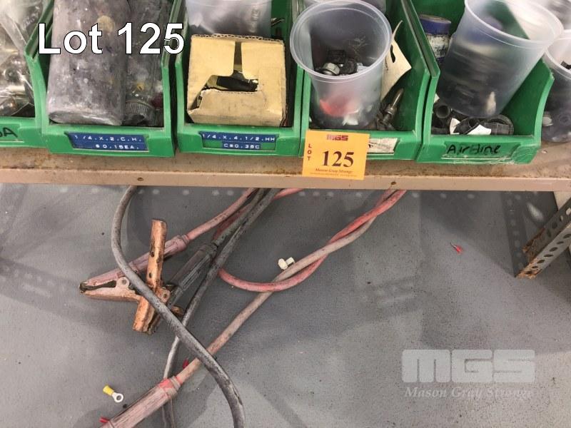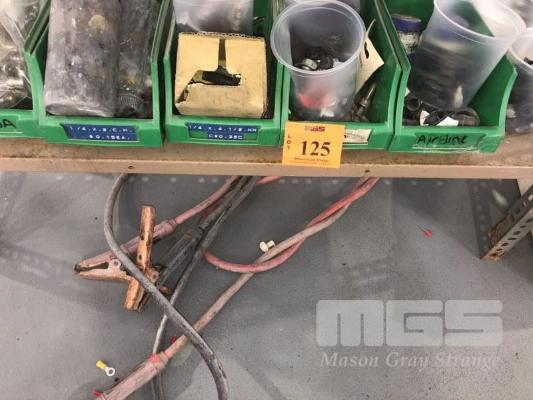 CONTENTS OF SHELF, INCLUDING ASSORTED HARDWARE, LIGHT GLOBES, F CLAMP, PIPE FLARING CLAMP & JUMPER LEADS