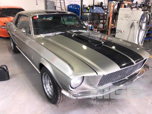 1968 FORD MUSTANG HARD TOP, LHD, ID: 8R01C115370, 289 V8 ENGINE 4BBL, FLOOR SHIFT AUTO, PAINTED IN SILVER DUCO PLUS DECALS, PLENUM PAINT PEELING, CHROME RIMS (NO REGO)