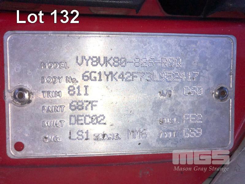 HOLDEN COMMODORE SS UTE, MODEL: VY8VK80, DOM: 2002, VIN: 6G1YK42F73L952417, REGO: BB919P, 267,416km, LS1 V8 5.7L, 6 SPEED MANUAL, HOLDEN BY DESIGN OPTION AWJ, 20' ALLOY WHEELS, RED LEATHER, DRIVERS SEAT WORN, AFTERMARKET CAM SHAFT & EXHAUST