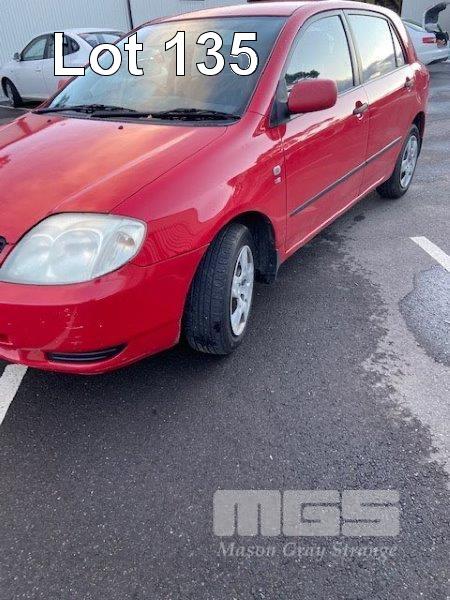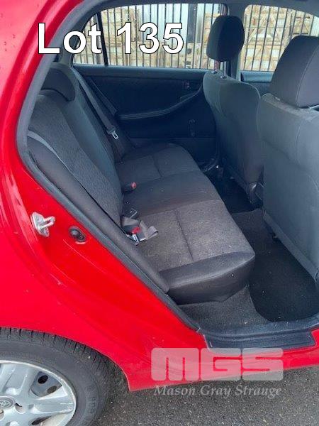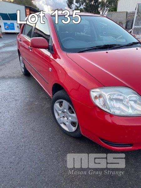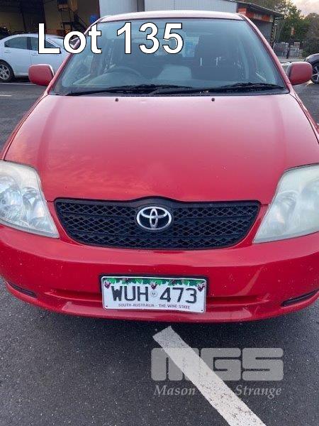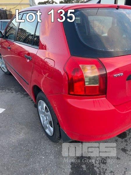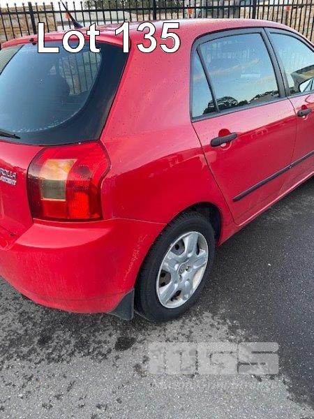 TOYOTA COROLLA HATCH SEDAN, MODEL: 27E122R, DOM: 2004, VIN: JTDKR22EX00166917, REGO: WUH473, 285,563km, 1.3L 4 CYLINDER AUTO, RED DUCO, A/C