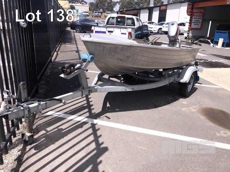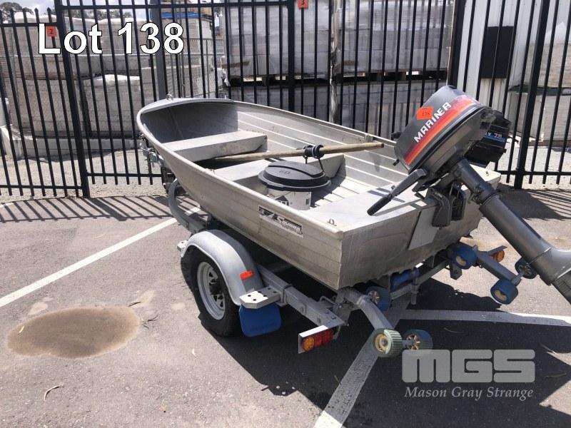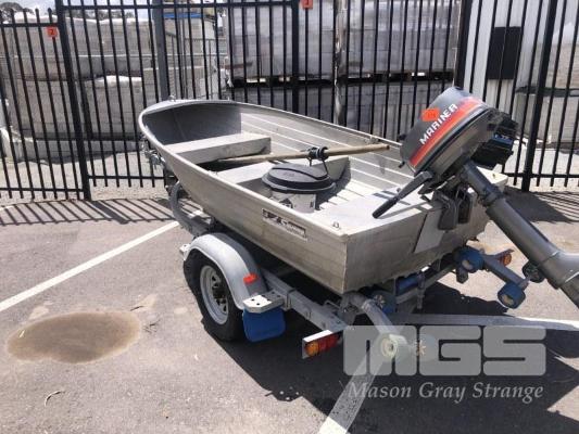 3.5m SAVAGE ALLOY DINGY, MARINER 4hp OUTBOARD, ON ROLLER EAGLE GALV TRAILER, DOM: 2011, VIN: 6T9T20005C0AH2155