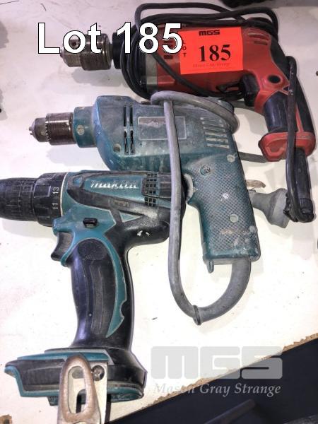 MAKITA BATTERY DRILL (NO BATTERY), 2 x 240v HAND HELD DRILLS