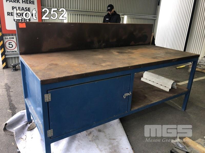 H/D PLATE STEEL COVERED BENCH, TUBE STEEL FRAME WITH BACK BOARD AND CUPBAORD, 2400 x 1000mm