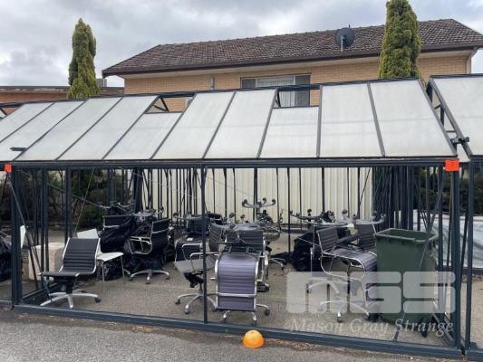 DUAL GLASS HOUSE UNITS, BUILT BY SPROUTWELL, 2017 EXTRUDED ALUMINIUM FRAMES DIMENSIONS, EACH: 3050 x 4870 x 1820 (WALL) x 2900mm GABLE TOP 2 x END SLIDING DOORS, 1040mm OPENING GLASS OUTER WALLS POLYCARBONATE ROOFING WITH LIFT UP ROOF VENTS & DUAL SLIDING DOORS BOTH UNITS HAVE GLASS & DOORS REMOVED ALL ITEMS/GLASS RUBBERS, ETC, ARE IN CRATES FOR TRANSPORT EACH ALUMINIUM FRAME MIGHT REQUIRE DISMANTLING FOR TRANSPORT