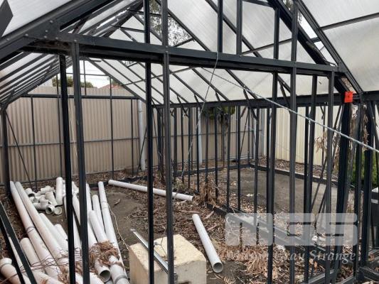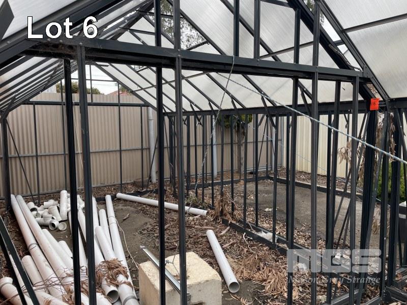 DUAL GLASS HOUSE UNITS, BUILT BY SPROUTWELL, 2017 EXTRUDED ALUMINIUM FRAMES DIMENSIONS, EACH: 3050 x 4870 x 1820 (WALL) x 2900mm GABLE TOP 2 x END SLIDING DOORS, 1040mm OPENING GLASS OUTER WALLS POLYCARBONATE ROOFING WITH LIFT UP ROOF VENTS & DUAL SLIDING DOORS BOTH UNITS HAVE GLASS & DOORS REMOVED ALL ITEMS/GLASS RUBBERS, ETC, ARE IN CRATES FOR TRANSPORT EACH ALUMINIUM FRAME MIGHT REQUIRE DISMANTLING FOR TRANSPORT