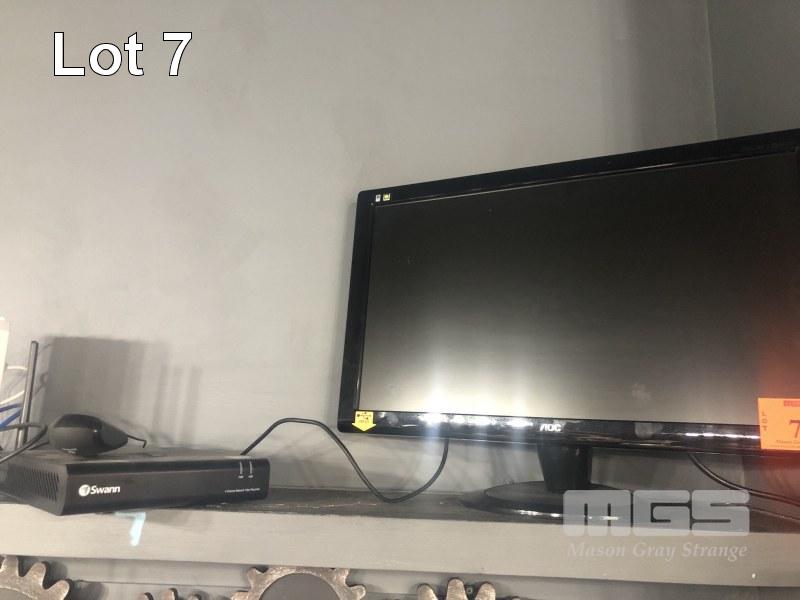 AOC 24" CCTV & SWANN CAMERA SYSTEM, MODEM & CORDLESS PHONE & POWER BOARD