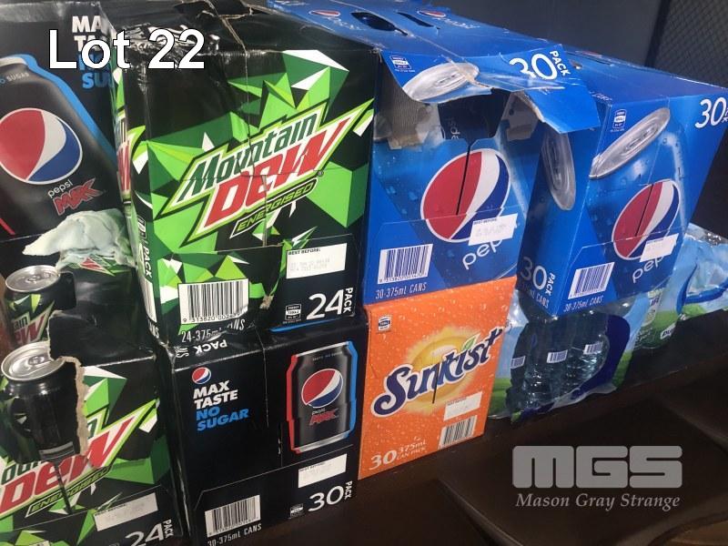 190 (APPROX) x ASSORTED CANS/ BOTTLES. SOFT DRINKS, PEPSI, SUNKIST, WATER, ETC