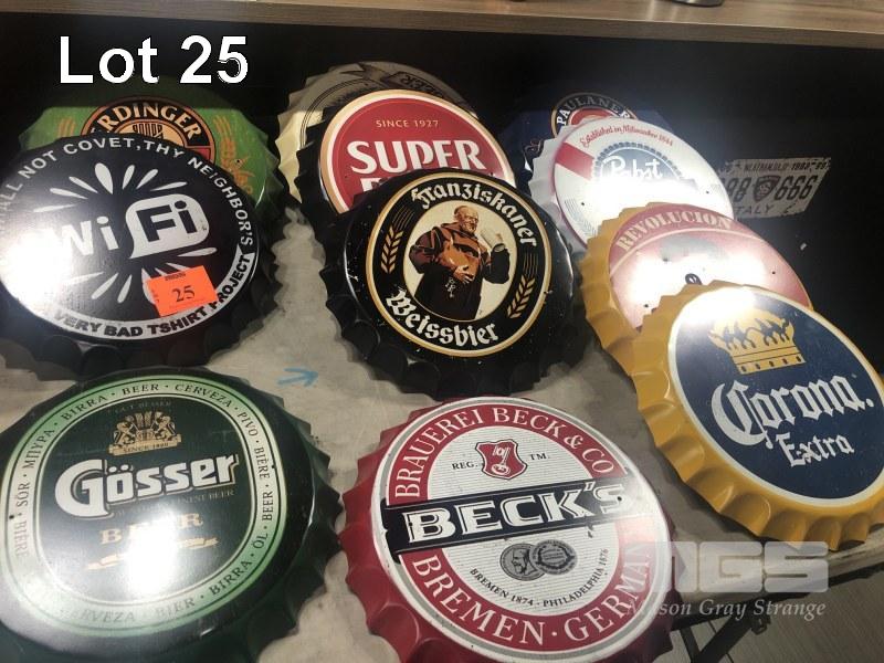 7 BOTTLE CAP DISPLAYS, ASSORTED
