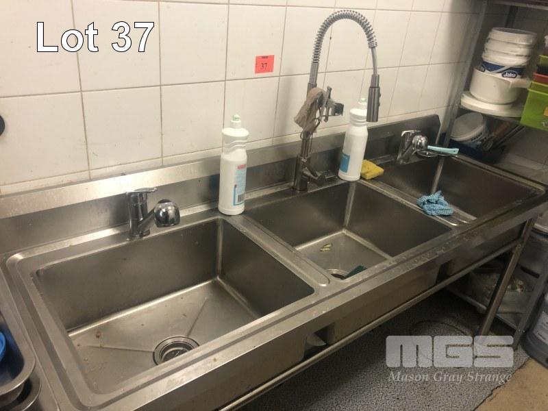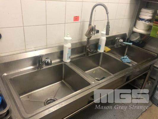 3 BOWL STAINLESS STEEL SINK UNIT, 1800 x 570 x 220mm DEEP, 2 x MIXERS & FLEXI SINK MIXER