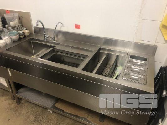 STAINLESS STEEL WASHDOWN UNIT INC 3 x ASSORTED SINKS, 2 x MIXERS, 1500 x 700mm, NOT PLUMBED