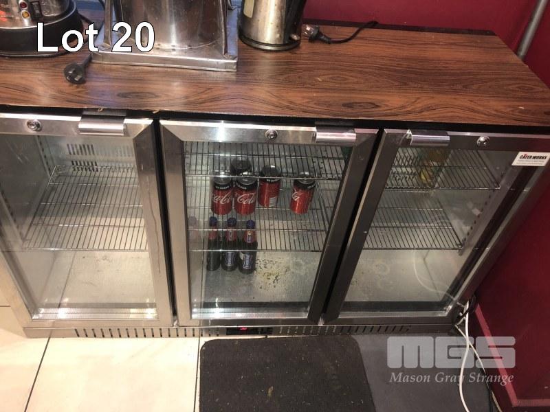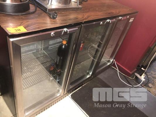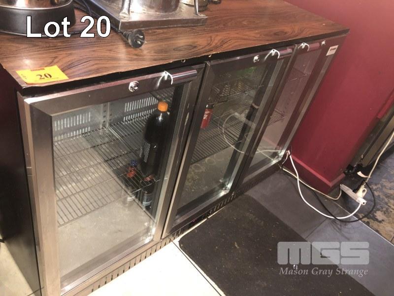 DISPLAY FRIDGE, BACK BAR COOLER 3 x GLASS DOORS MOD: CW-SS-3E 300 LITRE 1350 x 490 x 835mm (H) DIGITAL READOUT SELF CONTAINED UNIT RUNNING OK