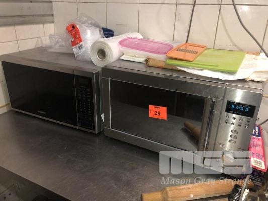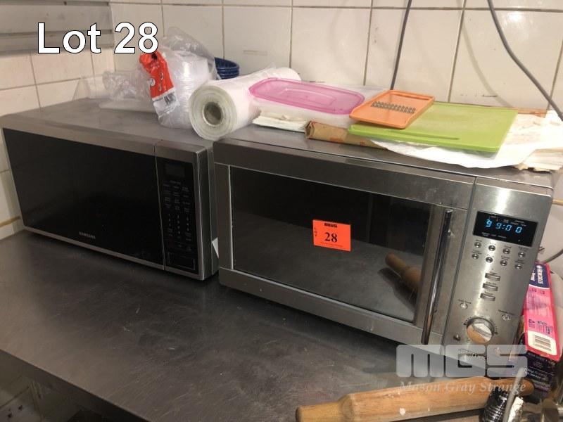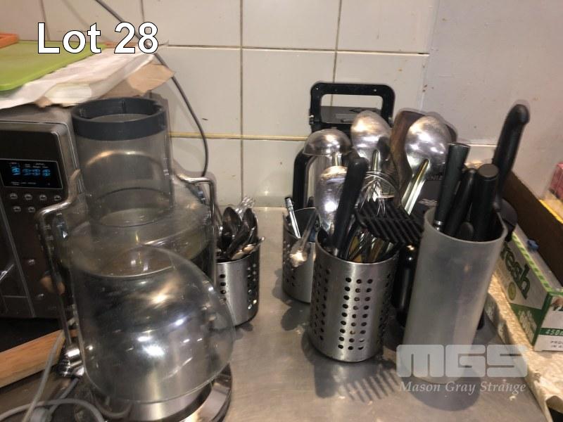 2 x MICROWAVES, SAMSUNG & SMEG, FOOD PROCESSOR, CUTLERY, KNIVES, ETC, CONTENTS TOP OF BENCH